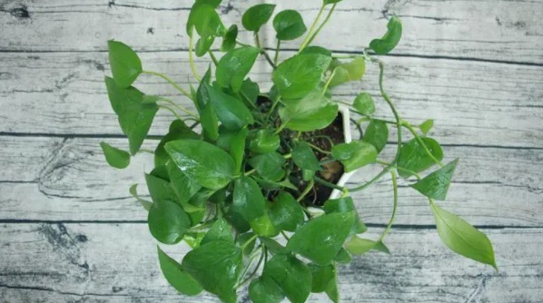 绿萝是比较常见的室内盆栽植物,生命力特别顽强,即使没有土,只浇水也能成活,有着很好的净化空气作用,能够吸收空气当中的有害气体。