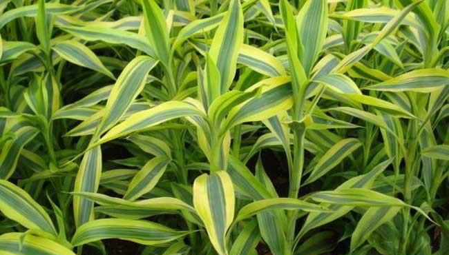 2、银心富贵竹:与金心富贵竹不同,富贵竹的叶片中央有一道银白色的纵条纹。