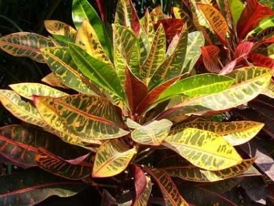 变叶木是大戟科灌木或小乔木,高达两米,叶片宽大,而且一片叶子就有好几种颜色交错在一起,绿色、淡绿色、紫红色、紫红、黄色,令人目不暇接。它是一种很常见的观叶植物,庭院、公园都很常见到。接下来为大家科普变叶木的养殖方法和注意事项。