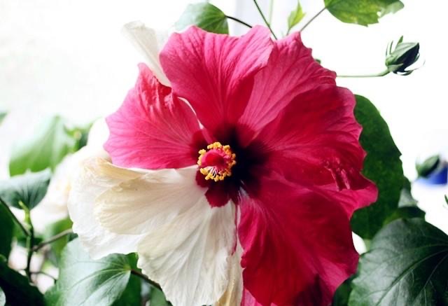 五色芙蓉花的花色是红白相间的,相融合的非常贴切,好似一对情侣一般缠绵,所以又名鸳鸯芙蓉。 其实五色芙蓉是属于山茶花的一个品种,所以有许多地方都用它来泡茶,名为五色茶,这种茶还非常受人欢迎,而且五色芙蓉的花型娇艳,是许多人喜欢它的重要原因之一。