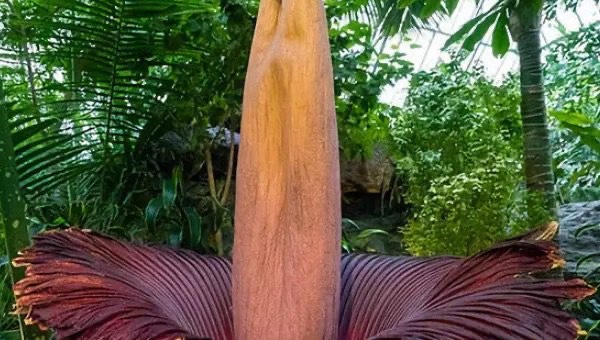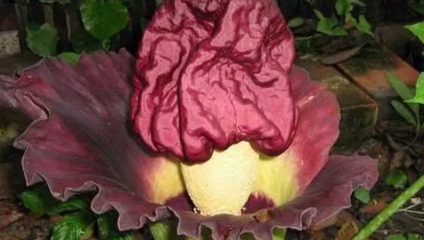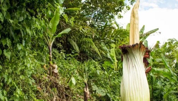 尸花是泰坦魔芋花,还有一个更为形象的名字“尸臭魔芋”。植株是天南星科魔芋属植物,块茎直径可以达到65厘米,叶柄一般高3-4米,叶片直径超过5米,覆盖面积20平方米,花朵在开放的时候,会散发出刺鼻的尸臭味道,这种植物主要分布在印度尼西亚苏门答腊岛西部巴里赞山脉的热带雨林中。【足记网】