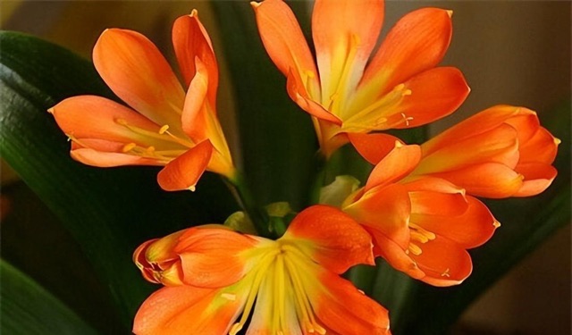君子兰又叫做大叶石蒜,属多年生草本植物,它的花瓣一般为橘黄色或者橘红色,看起来非常艳丽有型,花期在春节前后,不太耐寒,多为温室种植,用来美好空间。