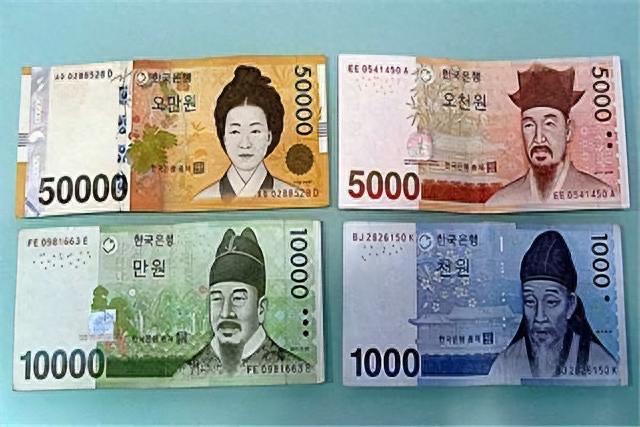 韩国也有1韩元、5韩元和10韩元、50韩元和100韩元、500韩元的大面值硬币。货币有两种,和人民币一样,包括纸币和硬币。韩元的纸币上也印有很多历史人物,颜色也很丰富,很容易分辨。【足记网】