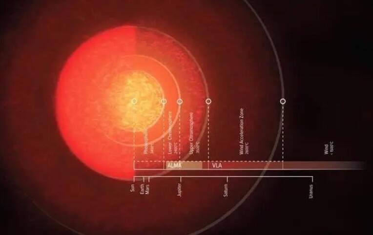 需要注意的是,尽管红巨星比太阳大得多,但它们的密度却比太阳低。这是因为红巨星的巨大体积与其质量相对较大相结合,导致其相对较低的密度。太阳的平均密度约为1.41克/立方厘米,而红巨星的密度通常远低于此值。