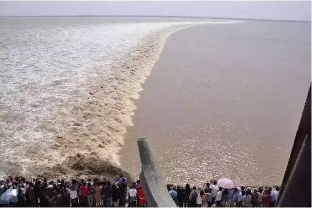 涌潮,是发生于喇叭状河口的一种特殊潮汐现象。【足记网】潮水涌入喇叭状的河口,随着河口变窄,河床抬升,海浪堆叠,形成一道壮观的“水墙”,这就是涌潮。
