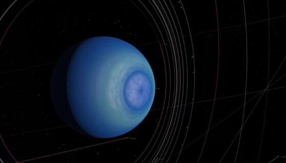 天王星质量在太阳系中排名第四,体积排名第三,约为地球的64倍,主要成分是氢、氦、甲烷和氘。地幔由甲烷和氨的冰组成,内核由冰和岩石组成。天王星是太阳系中一颗寒气逼人行星,大气层温度非常低,达到-224℃。天王星每84个地球年环绕太阳公转一周,距离太阳大约为30亿公里。
