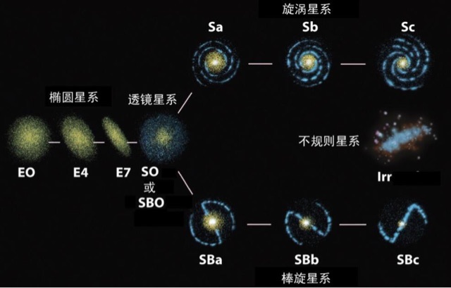 我们知道银河系是一个盘状结构的星系,我们自身的视角所看到的星系分布在一个相对平面上。然而,我们也知道宇宙中存在着各种类型的星系,包括椭圆形、棒旋形、不规则形和不对称形状的星系等。