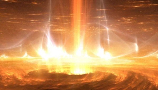 随着太阳的不断自转,磁场弯曲越来越厉害,在磁场最强的地方成束的磁感线开始纠缠,最后捅破了太阳表面,延伸到大气中,形成一个磁环,而在太阳表面捅出来的地方就会形成太阳黑子,当此处的磁环变得异常强大时,磁环便会被吹向太空,最后形成一场震撼的太阳风暴。