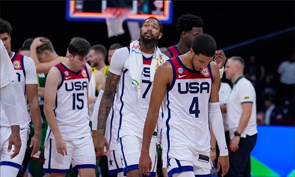 首节比赛,美国队有些慢热,单节只拿到12分,而立陶宛队则在攻防两端统治了比赛,单节轰出31分。次节,美国队在进攻端持续低迷,尽管爱德华兹表现抢眼,一度帮助美国队将分差迫近,但无奈立陶宛队火力全开。半场战罢,立陶宛队54:37领先。【足记网】易边之后,立陶宛队命中率开始下降,美国队则多点开花,分差在第三节结束时缩小至6分。末节开始阶段,立陶宛队仍然牢牢控制着场上局势。终场前,美国队接连命中三分将分差再次缩小,但美国队始终无法更进一步,最终立陶宛队将领先优势保持到了终场。