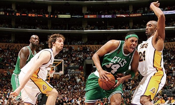作为NBA历史上夺冠系数最多的两支球队,湖人队和凯尔特人队的恩怨可以追溯到上世纪了,在得到加内特和雷阿伦之后,凯尔特人又陆续补充了多名防守悍将,让球队的整体实力瞬间上升到了总冠军级别,湖人队也不含糊,在交易保罗失败之后,球队又以“白菜价”交易来了全明星大前锋保罗·加索尔辅佐科比,但是无奈整体实力更强的凯尔特人还是在那一年笑到了最后。