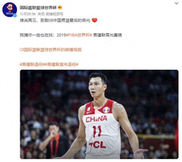 紧接着,“易建联退役”词条直接冲上了各个社交媒体热搜榜第一。随之而来的,是篮球圈的集体祝福。
