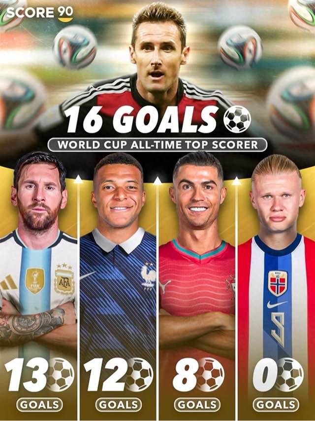 世界杯历史射手榜:(*为现役球员)