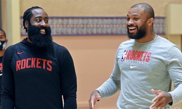 在哈登砍下43+10+12的超神数据之后,被ATSports的记者拦下做采访,结果塔克突然静悄悄地走到了哈登的身后,对着哈登的耳朵一边吐气一边勾搭哈登的左侧耳朵,瞬间引发了火箭队主场球迷的哄堂大笑,这也从侧面反映出了火箭队当时的队内气氛非常的好。回过神来的哈登还故作委屈的往后退了几步。【足记网】