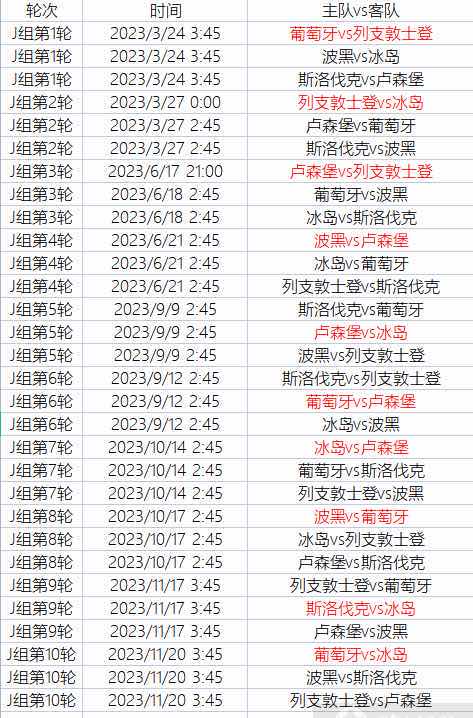 J组详细赛程表