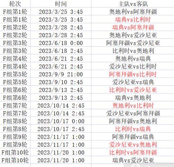 F组详细赛程表