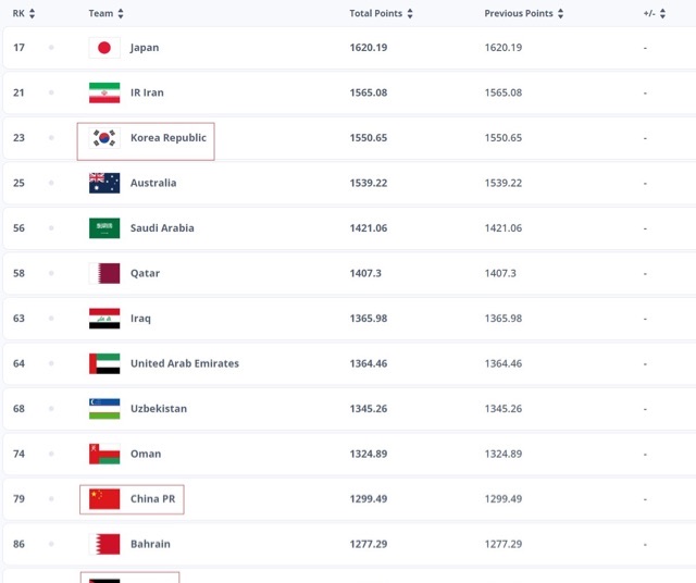 国足:世界第79亚洲第11位