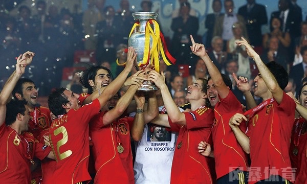 2008年欧洲杯是上,西班牙黄金一代正式登上世界舞台。门将卡西利亚斯,后卫普约尔、皮克、拉莫斯、卡普德维拉,中场阿隆索、布斯克茨、席尔瓦、哈维、伊涅斯塔,前锋比利亚、托雷斯,这样的阵容哪怕比起巅峰巴西来也毫不逊色。在这批人的努力下,西班牙夺得了2008年欧洲杯,2010年世界杯和2012年欧洲杯,连续三届大赛折桂,统治力堪称恐怖。