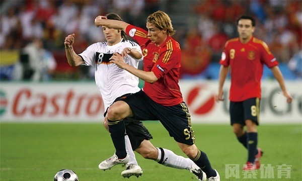 2008年欧洲杯决赛,西班牙对阵德国,上演足球界的巅峰对决。比赛第33分钟,塞纳中圈送出传球,哈维转身右脚直传空档处接应的托雷斯,已经被拉姆卡住身位的托雷斯展现出强悍的身体素质,强行从外线超越对手突入禁区打门得手,将比分改写为1-0。最终西班牙1-0获胜,夺得欧洲杯冠军,而托雷斯绝杀德国,超车拉姆的场面,也成为欧洲杯历史上永恒的经典。【足记网】