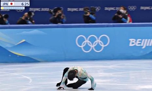 北京时间2月10日,2022年北京冬奥会花样滑冰男子自由滑比赛,两届冬奥会冠军、日本名将羽生结弦两连摔,挑战4A遗憾失败,最终获得第四名。坚持完成比赛后,羽生结弦满头大汗,深情向各方鞠躬致谢。随后,羽生结弦在离开赛场时,深深鞠躬,并弯下身来久久触摸冰面,难掩不舍,不出意外的话,这也将是他最后一届冬奥会了。