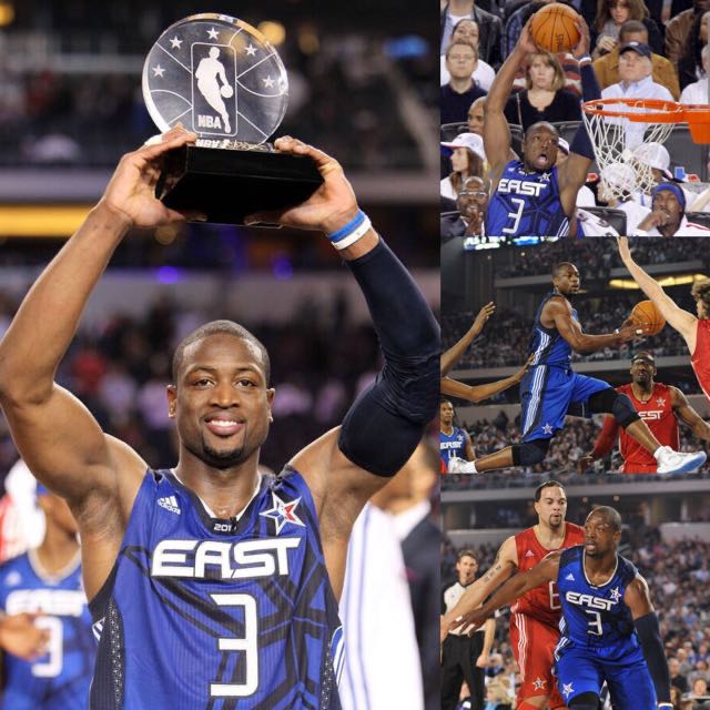 本届全明星赛东部队的德怀恩·韦德全场比赛拿下28分11助攻6篮板,以及5次抢断成功摘下MVP奖杯。