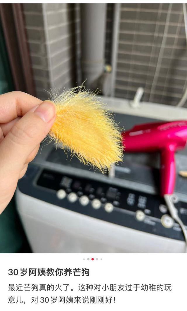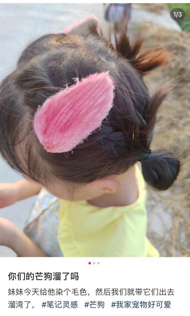 事实上“芒狗”并不是年轻人的专利,也有一大波“妈妈粉”。有人带着孩子一起制作“芒狗”,还染色后做成发卡。