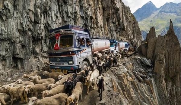 印度佐吉拉山口的公路在官方叫做公路,也是世界上最危险的九大公路之一,但很多人对此并不认同。这条全程约9000米的这段山路没有任何护栏保护,原本就狭窄的山路有时候还要和放牧中的羊一起分享,那真的是考验司机的忍耐力了。