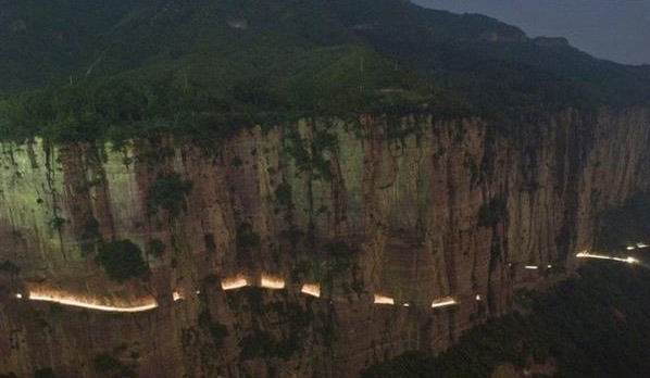 中国的郭亮隧道在外国人的描述中被称为“无法用言语描述的公路”,整条公路全长1250余米,曲折的山路仅5.8米宽,约4米高,隧道开有30多个“窗户”,从“窗户”往下看便是万丈深渊。这条公路是十三位村民手工在山体上凿壁,历时5年完成的。