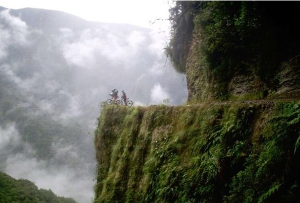 玻利维亚的永加斯路又名“死亡之路”,从这绰号上就能得知这条公路的可怕绝非儿戏,粗略统计,每年在这条公路上丧生的人数为200-300人。一面是大约600米深的悬崖,一面是垂直的峭壁,顿时给人一种想逃都无处可逃的压迫感。