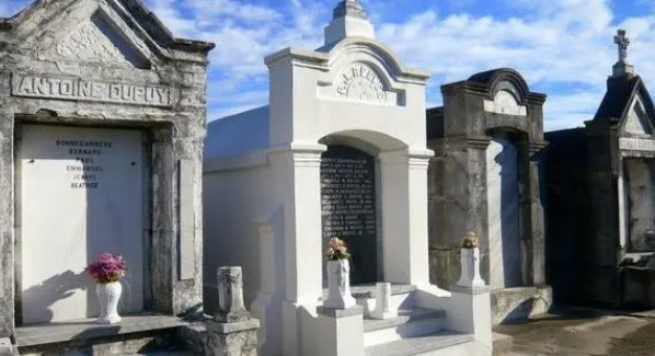 由于低于海平面的新奥尔良无法土葬,棺木都被安葬在街道边的墓屋中。而作为历史最为悠久的公墓之一,建于18世纪末的圣路易斯公墓埋葬着巫毒女祭司玛丽卢(Marie Laveu)。据说在当地单独参观墓地十分危险,所以这里需由导游陪同参观。