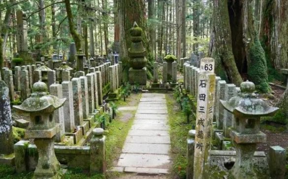 这座日本规模最大的墓地位于关西山(距大阪约48公里)庙城镇高野山。墓地以弘法大师的陵墓为圆心,环绕着数千座远道而来朝圣的人们点亮的黄铜油灯。
