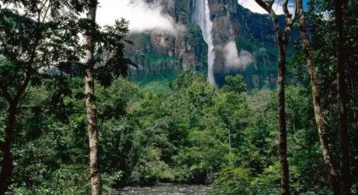 安赫尔瀑布群山环抱,远远望去像一条白丝带挂在一个大石盆上。瀑布周围古木参天,怪石嶙峋,神秘深邃,气势磅礴,平添几分庄严之美。