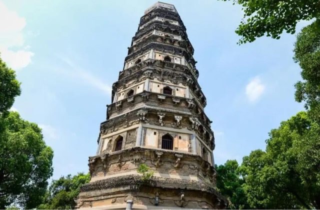 虎丘塔也叫云岩寺塔,因位于江苏省苏州市的虎丘山上而得名虎丘塔,塔建于北宋时期,塔高约48米,共7层,因为塔倾斜严重,所以也有着“中国第一斜塔”之称。