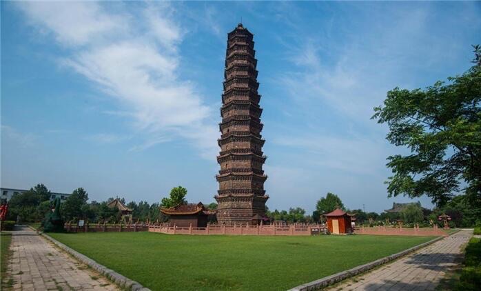 开封铁塔是位于河南省开封市境内的一座高达56米的铁塔,塔始建于北宋时期,共有13层,经过900多年的风雨侵蚀依然巍然挺立,有着“天下第一塔”的美誉。