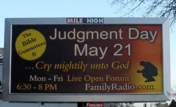 哈罗德·坎平作为一个基督教的福音传道者,这个人预言了世界末日十多次,包括2011年的两次,他声称那是在圣经中诺亚大洪水之后的7000年。他的追随者卖掉了他们的财产,在某些情况下卖了他们的家。关于准备审判日的广告牌遍布美国各地,酒吧举行了世界末日派对。可悲的是,世界根本没有终结。