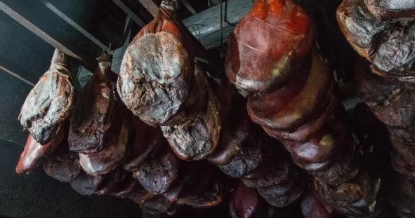 黑山火腿产自葡萄牙的巴兰科斯,它是由当地土种猪制成的,经过长时间的盐腌和风干,具有浓郁的香气和口感。