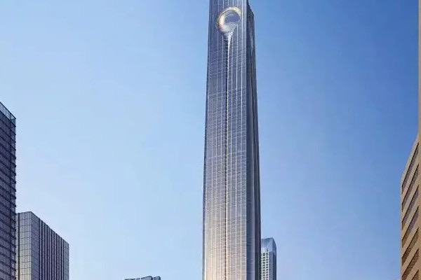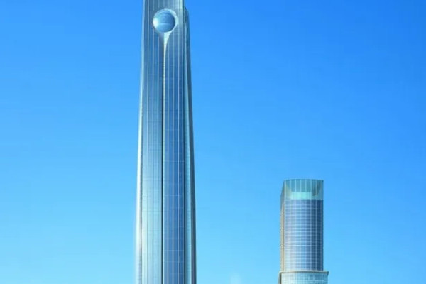 东北第一高楼沈阳宝能环球金融中心,位于辽宁省沈阳市沈河区,作为青年大街沿线的标志性建筑,它的T1塔楼高度,多次进行了缩水,因为高度的大幅度变化,整体的效果图也发生了非常大的变化,之前象征着北方明珠的造型寓意已然消失,新楼的顶部城V型。