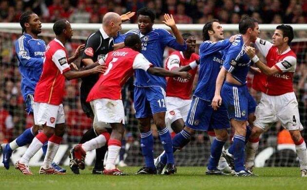 1990年英甲联赛曼联对上阿森纳,冤家相见分外眼红,从两队的两名球员发生嘴角开始,冲突从场上蔓延到替补席上,甚至受伤的球员都参与了战斗。赛后双方各遭到扣分的处罚。