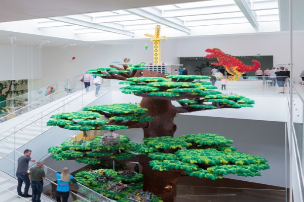 不仅馆外的楼梯都是积木状,并且采用的也都是2*4乐高积木的基础造型,同时在馆内还有非常多的由乐高积木拼接成的巨大雕像,比如由600万块乐高积木拼成的参天大树-“创意之树”,还有庞大的高达6米的彩虹色瀑布,据说是来自世界各地的乐高粉的杰作,这里简直就可以说是他们的天堂。【足记网】