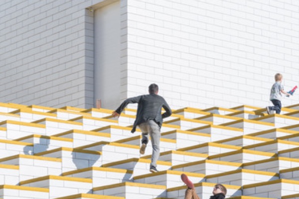 而且不同的区域,就连楼梯也是非常不同且别致的,比如外部的则主要是按照乐高积木的基础造型设计,而内部则是利用一块一块像是像素的瓷砖进行布置的,带有各种鲜艳强烈的色彩,而且不同的楼梯通向21块积木的不同楼顶,使得观众能够步入顶层看到真正的乐高积木,并且还设置了精彩的表演。
