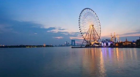 金鸡湖是苏州的大型湖泊之一,湖景优美,周围环绕着绿树和花草,是休闲散步和观赏湖景的好去处。