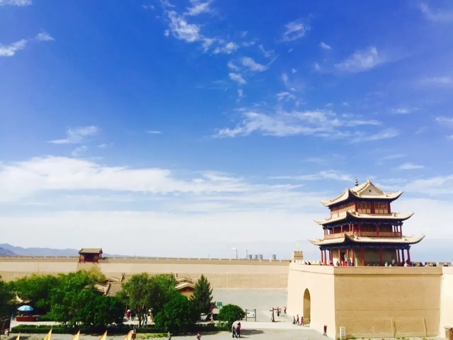 嘉峪关,自古是“丝绸之路”的必经之地,因地势险要,更是战略要冲,故有“天下雄关”、“边陲锁钥”之称。它接了沙漠和戈壁,是万里长城西短的主宰,是大明王朝的世界尽头。在城墙眺望远方,一望无际的是沙丘和天际。