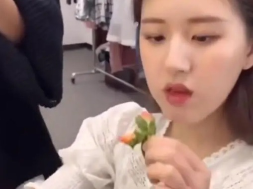 从画面上看,这盒草莓品相非常不错,个头远超普通小草莓,而且每个草莓都带着下面的绿叶子,看着就格外新鲜,价格上也可能便宜不了。而赵露思显然是经常吃这种草莓了,看到工作人员端过来后,立刻就腾出个手来从盒子里拿起一个草莓,嘴上还说着“草莓好吃”。【足记网】赵露思三两口就把草莓吃进了肚子,但有意思的是,赵露思只把草莓上面“红色”的部分吃掉了,下面“白色”的部分直接就扔回了盘子里,从盘子里残骸分析,赵露思不是因为手里草莓的问题才不吃白色部分的,而是每个草莓都只吃一半,因为里面已经有“半截”草莓了。
