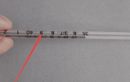 一手拿住体温计尾部,即远离水银柱的一端,使眼视线与体温计内液柱的上表面保持同一水平,拿着水平横放,然后慢慢地转动体温计,一边旋转一边观察,从正面看到很粗的水银柱时就可读出相应的温度值。【足记网】一般是在刻度及数字中间的那条棱看,刻度朝上三角边朝自己看到一条白色水银线,对应的数字位置就是相应的体温。即:顺着刻度和度数之间的缝隙看银线到哪里。