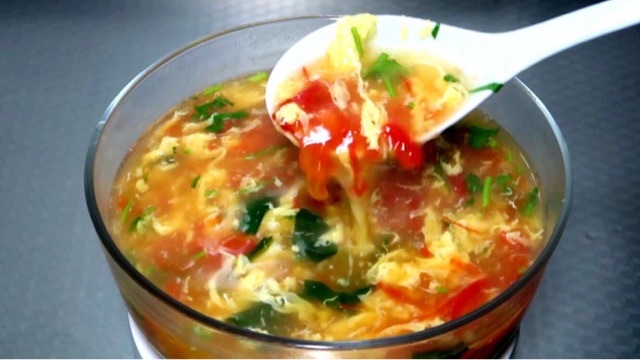 8、直接倒入紫菜汤碗里,一碗好喝的蛋花汤就完成了。